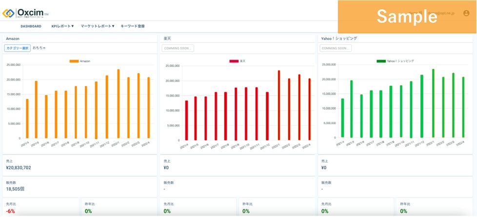 Oxcim β版は、複数のECモールを総合的に判断し、クロスチャネルで最適化を目指す、業界初のSaaSです。ECモールでの売上拡大に向け、マーケット状況の分析やポジショニング、問題発見、売上の要因まで一連のプロセスにおける分析が容易に行えるようになります。メーカー企業様のECモール攻略を支援する無料のデータ統合プラットフォームであり、デジタルマーケティング業界を牽引してきたオプトの運用知見を凝縮させているのが特徴です。