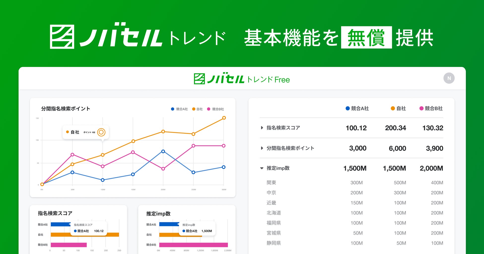 一方、ノバセルも、「指名検索」を指標にしたCM効果を可視化するサービスを提供しており、指名検索数に重きを置いたマーケティング支援を行なっています。