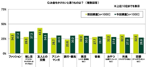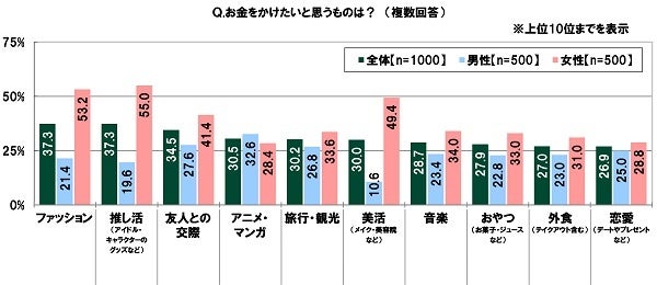 - 10代がお金をかけたいもの 男性TOP2は「アニメ・マンガ」「友人との交際」、女性TOP2は「推し活」「ファッション」