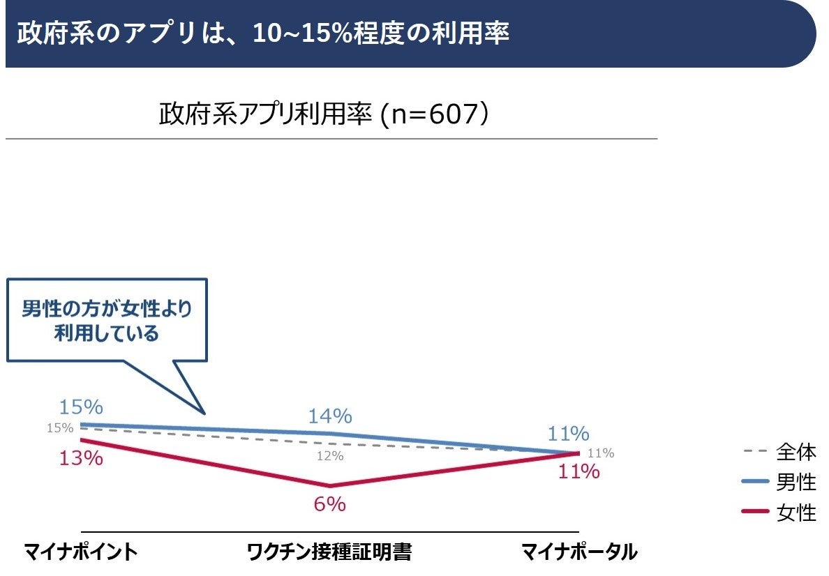 マイナポイント、新型コロナワクチン接種証明書アプリは男性の方が利用していることがわかります。