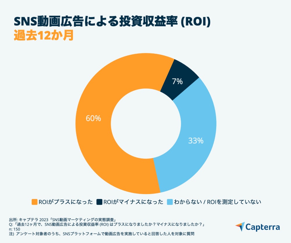5、60%がここ1年のSNS動画広告の投資収益率はプラスだったと回答