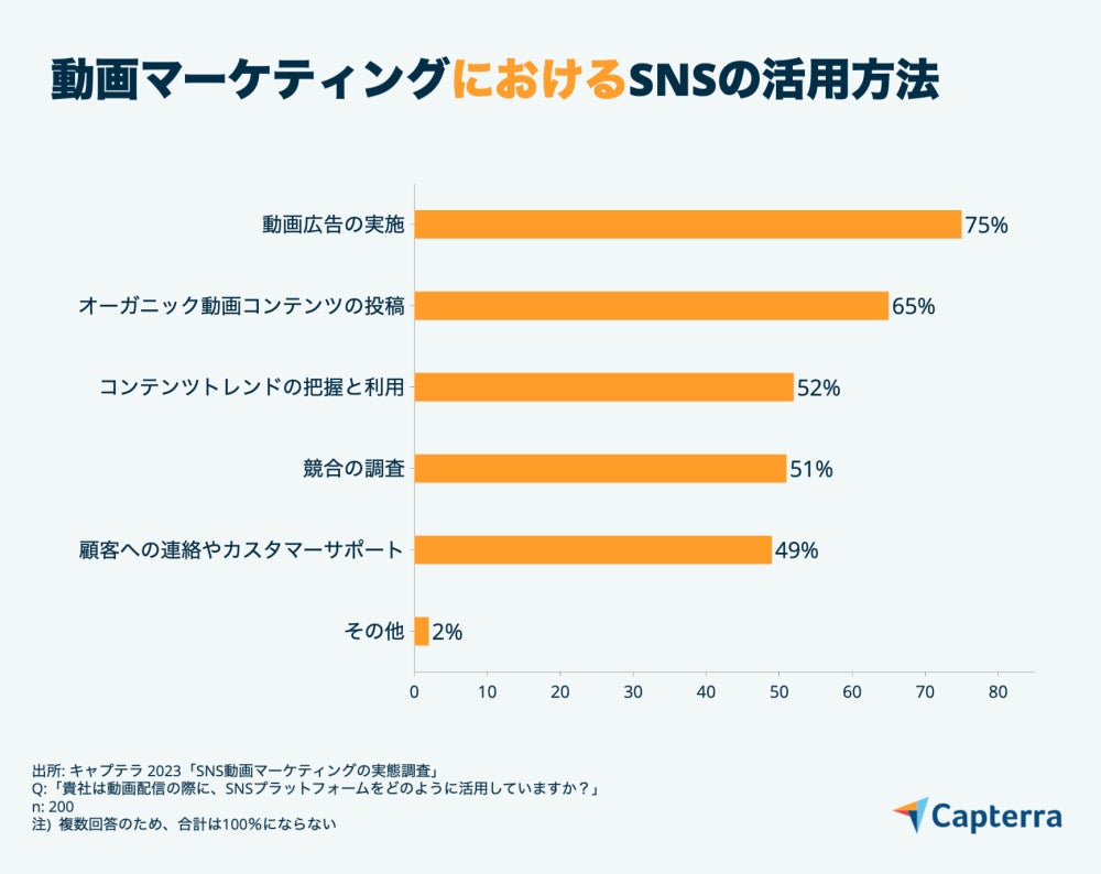 SaaS比較サイトCapterraはこの度、SNS動画マーケター200名に調査を⾏い、オーガニック動画配信と動画広告マーケティングに焦点をあて、その成果も含め明らかにしていきます。