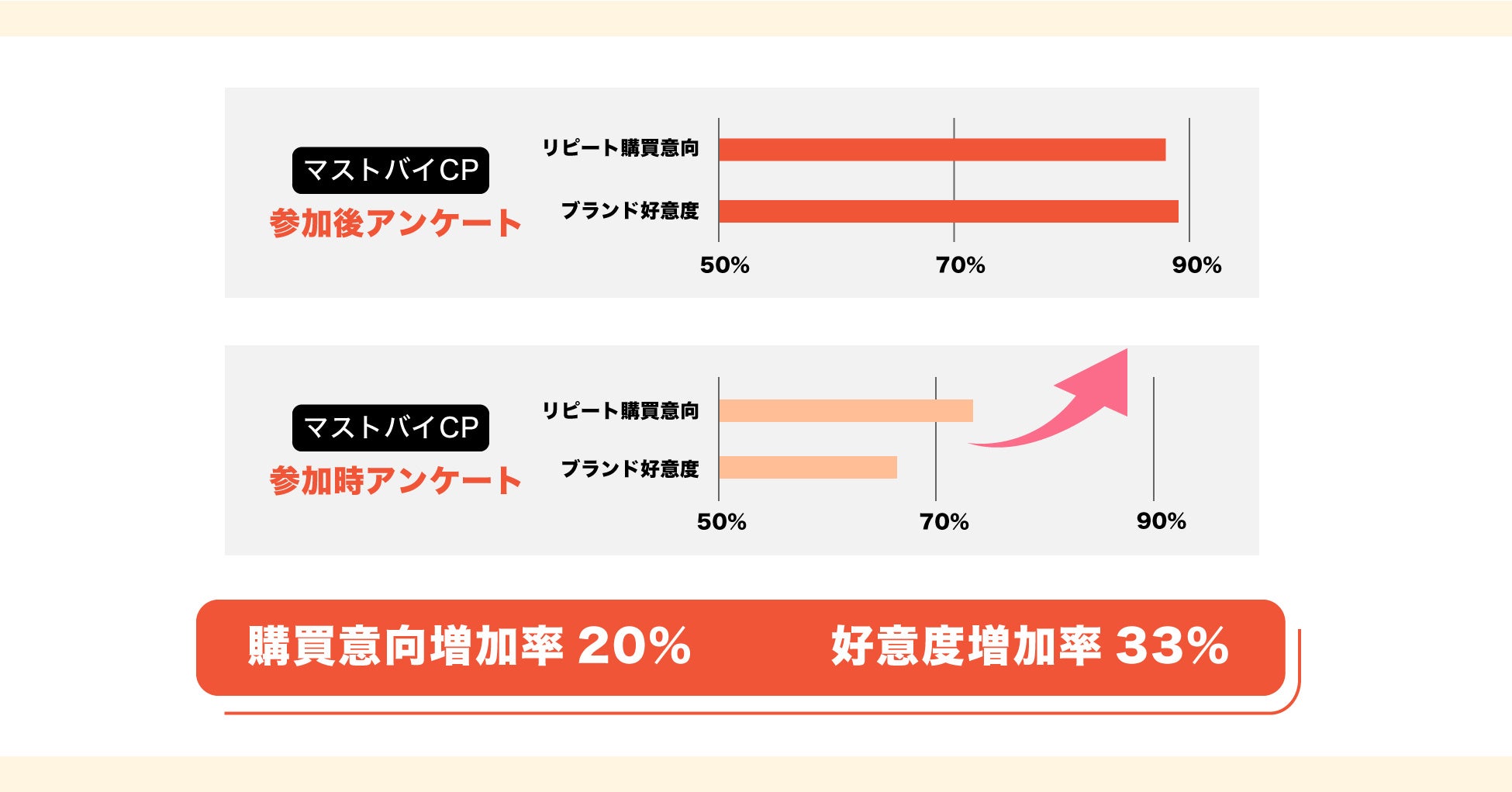 「マストバイキャンペーン」は対象商品の新規トライアルユーザーの獲得、及びキャンペーン参加者のリピート購買意向・ブランド体験価値の向上に大きく寄与するメニューです。