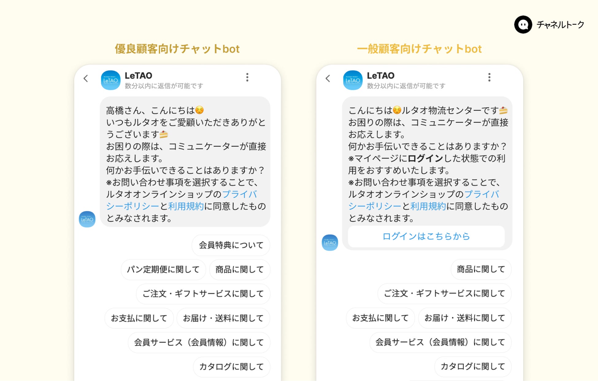▲ロイヤルカスタマーには特別なチャットボットを設定