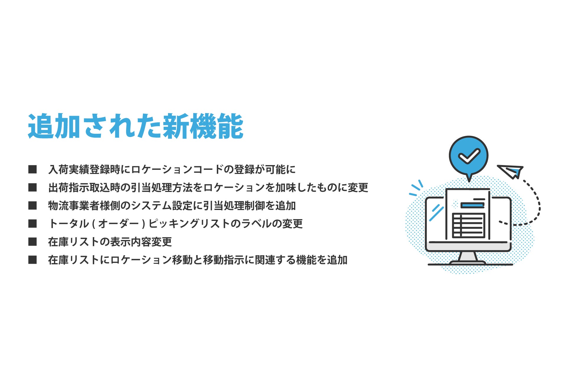 今回の新機能追加によって【① ロケマスタを新設!ロケーション情報を簡単に登録】【➁ 在庫情報にロケーションを追加】【➂ 引当時に引当ルールに基づいてロケーションを選択】といったサービスを物販・物流事業者様にご利用いただけるようになりました。