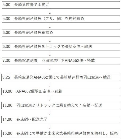長崎県からの朝〆鮮魚 スピード輸送スケジュール(イメージ)