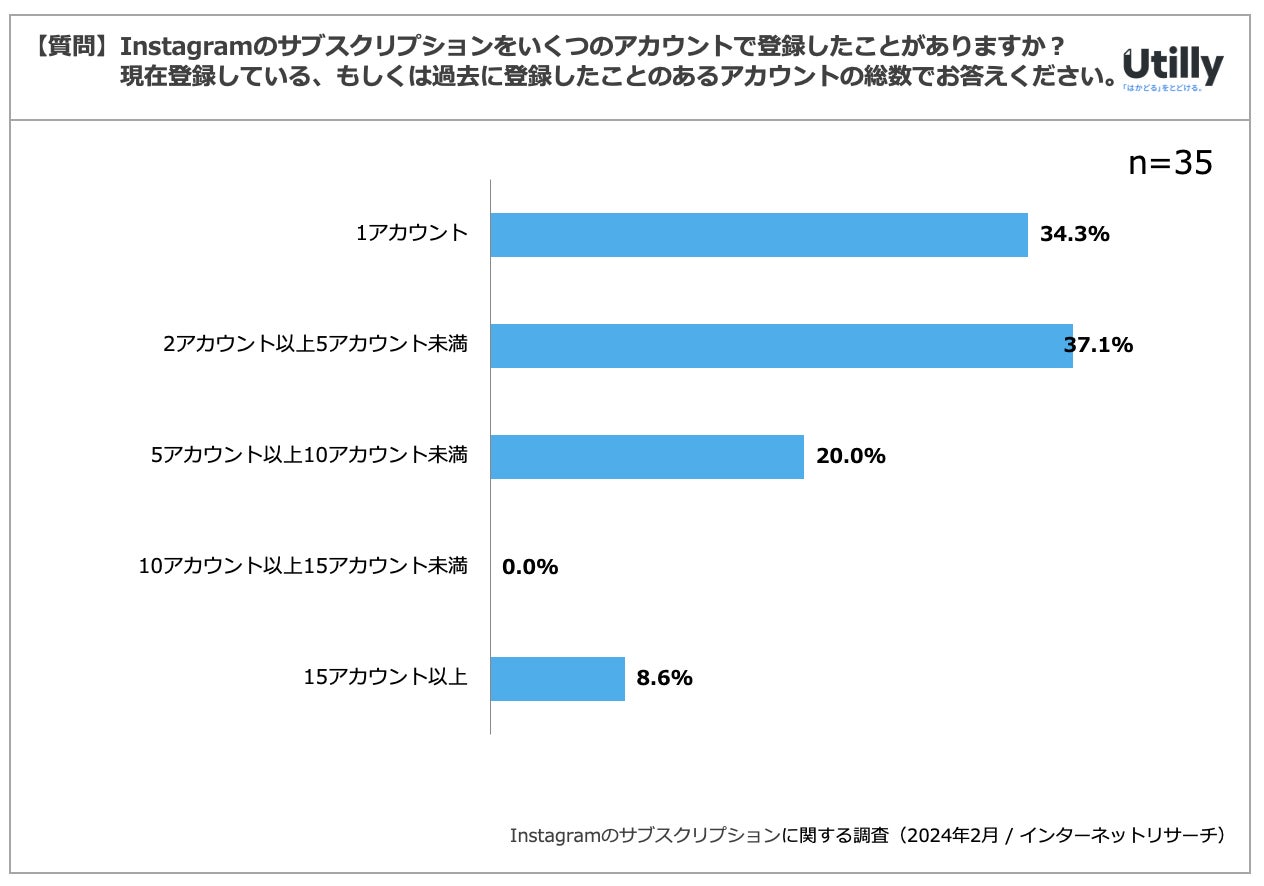 Q. Instagramのサブスクリプションをいくつのアカウントで登録したことがありますか?現在登録している、もしくは過去に登録したことのあるアカウントの総数でお答えください。