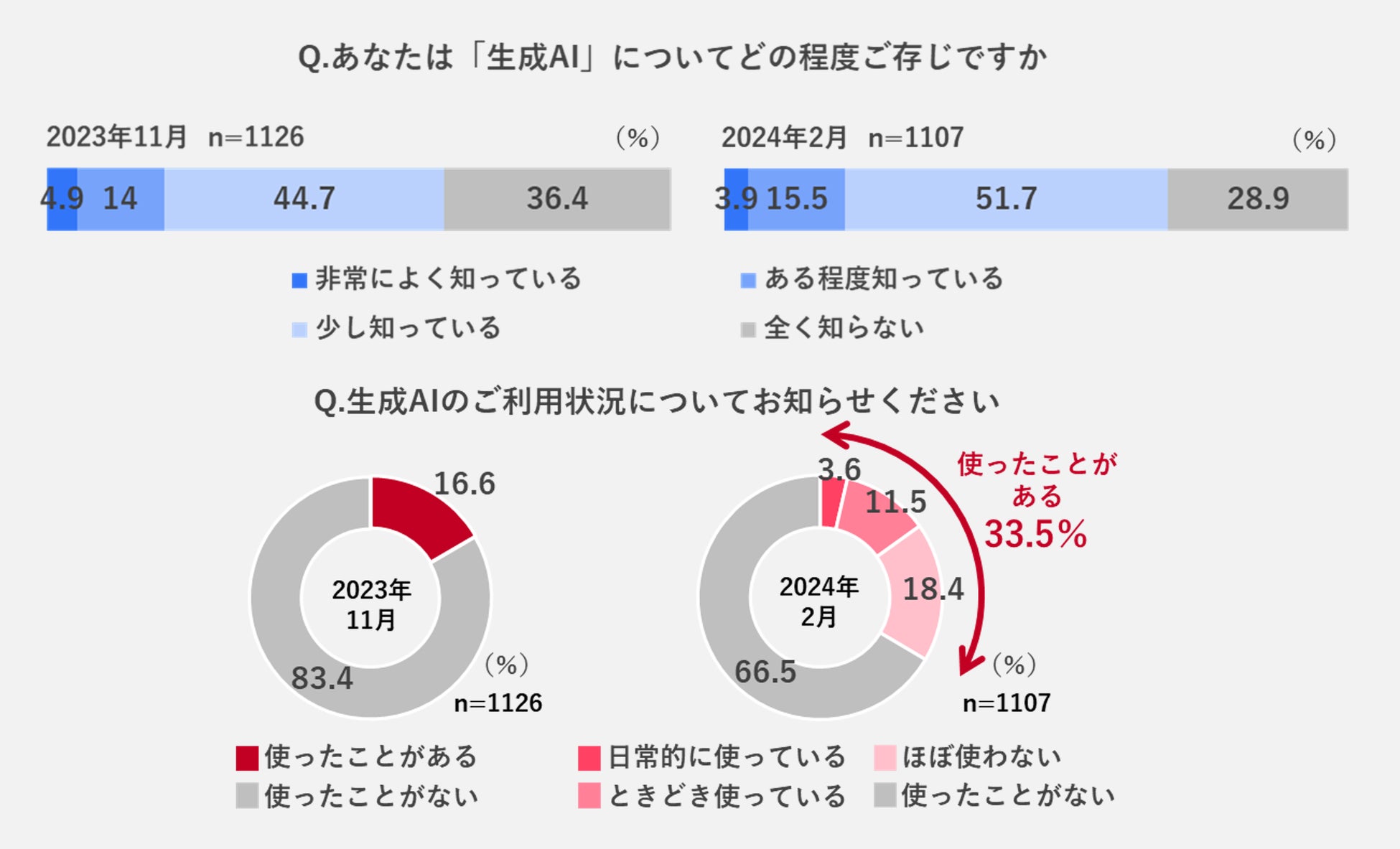 ■生成AIの認知と利用状況(2023年11月と2024年2月の比較)