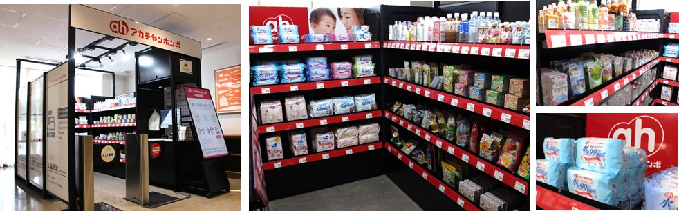 「アカチャンホンポ」の無人決済ショップは、大阪市の千船病院の1階に設置、産前産後に使用する商品や生まれた後すぐに使うおしりふき、ミルクなどの緊急性が高い商品に加え、ベビーフードやベビー飲料などをラインナップしました。