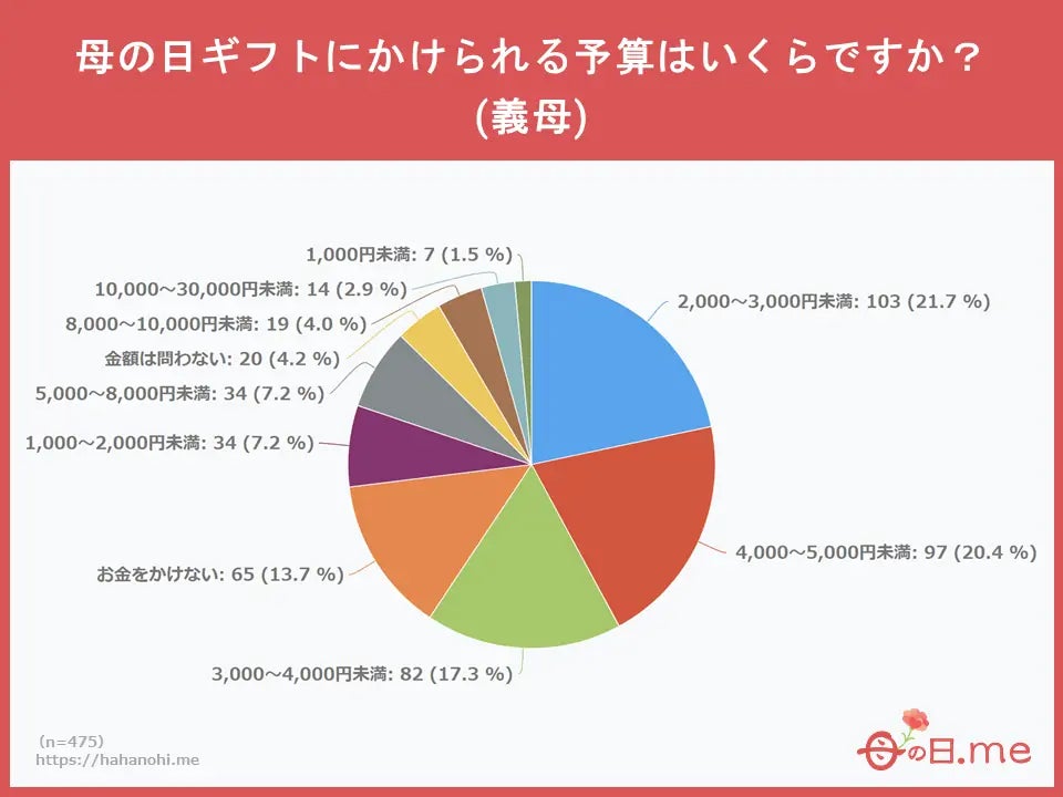 - 義理のお母さんへの母の日ギフトにかけられる予算はいくらですか?