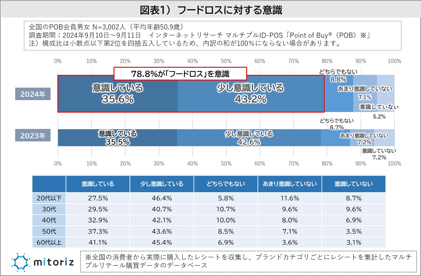 「フードロス」を意識している消費者は2023年調査から微増、年代が上がるほど意識している傾向が強い