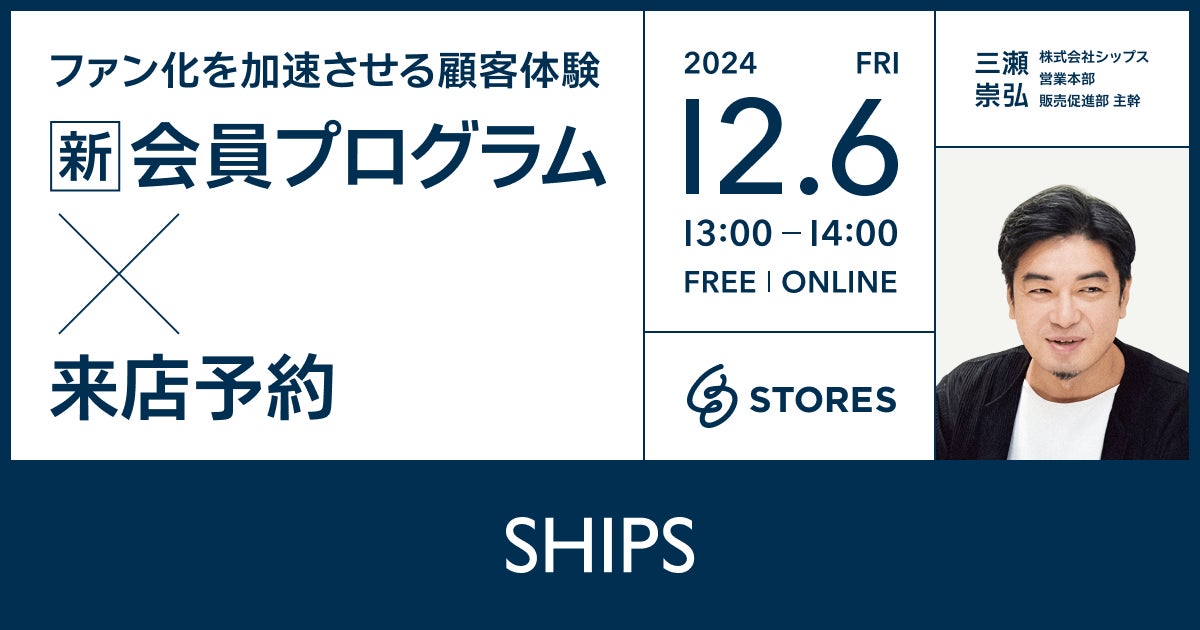 SHIPSの来店予約数を大幅に向上させた「ポイントプログラム×来店予約」施策において、プロジェクトリーダーの三瀬様を招いて具体的な取り組みやその成果についてお話を伺います。このセミナーでは、予約数や売上、顧客ロイヤリティ向上に関する実践的なノウハウをご紹介します。