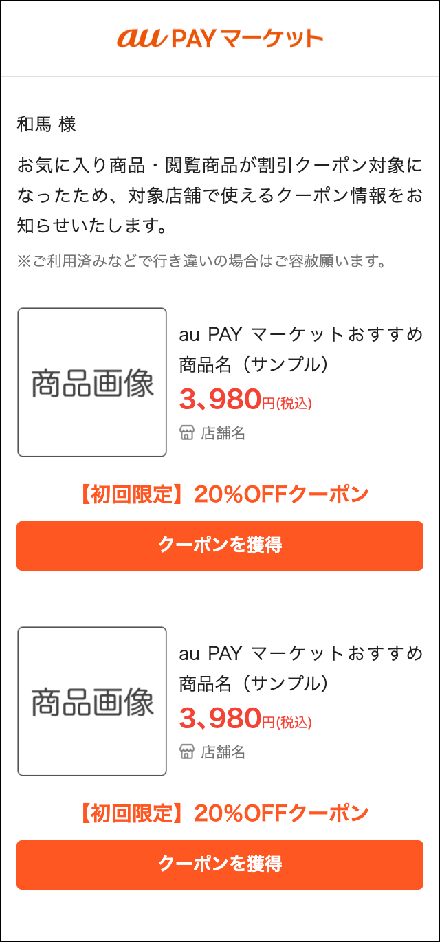 このたび開始する「自動販促オプション」では、商品ページを訪れた上で商品購入には至らなかった初めてご利用いただくお客さまを対象に、商品の割引クーポンを自動配信することが可能となります。これによりご出店店舗さまは、購入につながる可能性の高いお客さまに対し、手間なく機会ロスを防ぐことができます。さらに「au PAY マーケット」をご利用のお客さまも、購入検討中の商品をお得に購入できるようになった際に通知が届くようになります。