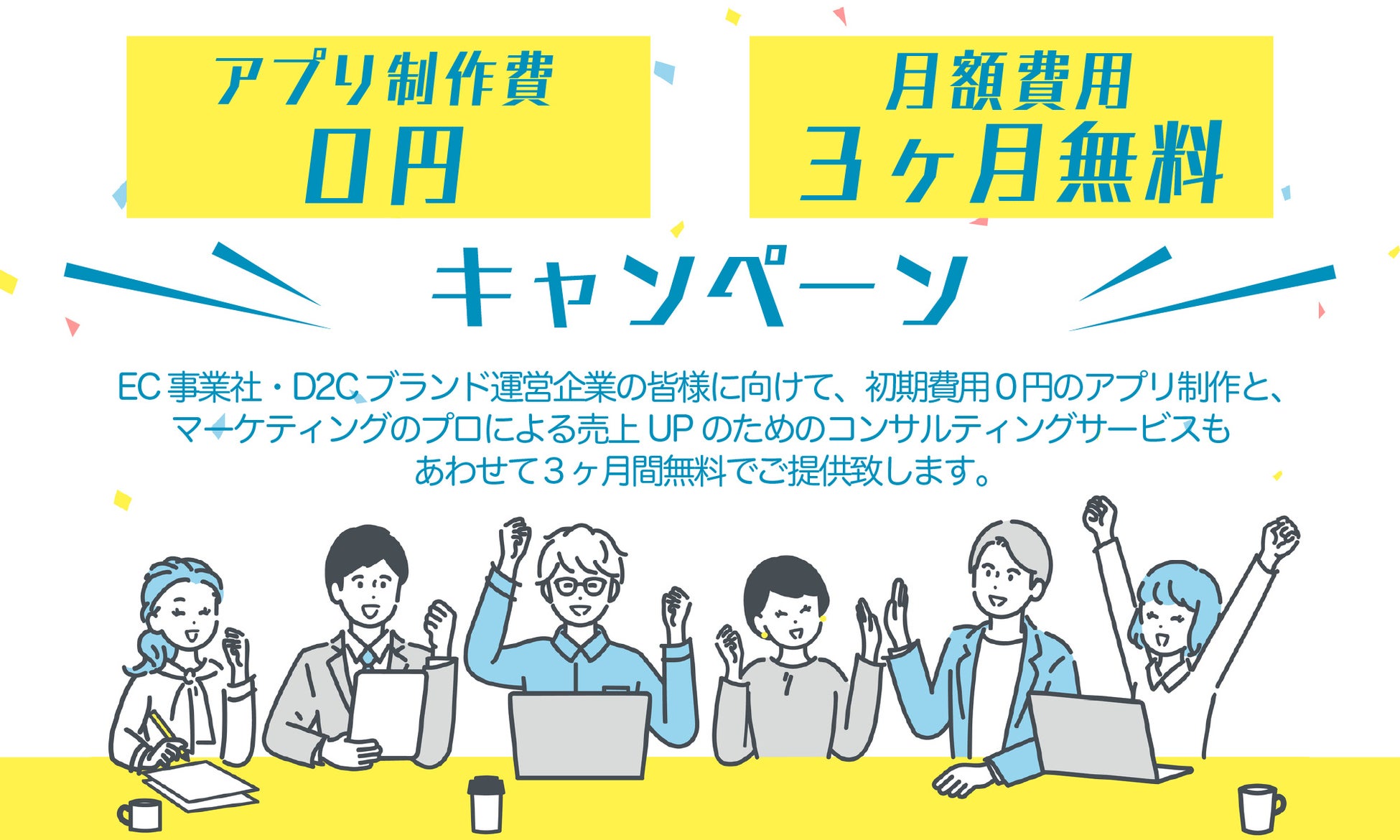 昨今は多くの業界においてDX化が進み、これまで実店舗経営されていた企業様もEC販売へシフトするなど様々なお取り組みをされています。アプセルではEC・D2Cブランド立ち上げにチャレンジされている企業様に向けて、売上UPのお手伝いをさせていただきたく、ECアプリ制作費0円&月額費用3ヶ月無料のキャンペーンを開始しました。デジタルの販促、アプリ制作ついて初心者の方でも、簡単に操作できる初期費用0円のアプリ開発・制作と、アプリマーケティングのプロによる売上UPのためのコンサルティングサービスもあわせて3ヶ月間無料でご提供致します。