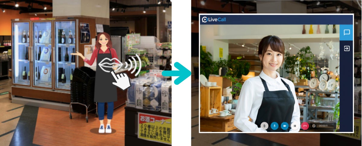 こうしたリテール業界のニーズに対し、「LiveCall」はWebサイト上でも実店舗と同様のリアルな接客を行い顧客の購入・決済までをサポートできる機能を提供しています。この度、VR技術を用いてWeb上にバーチャルな店舗空間を再現する「MiraiLab」と連携することで、これまで以上にリアルで臨場感のある顧客体験を提供できるようになりました。