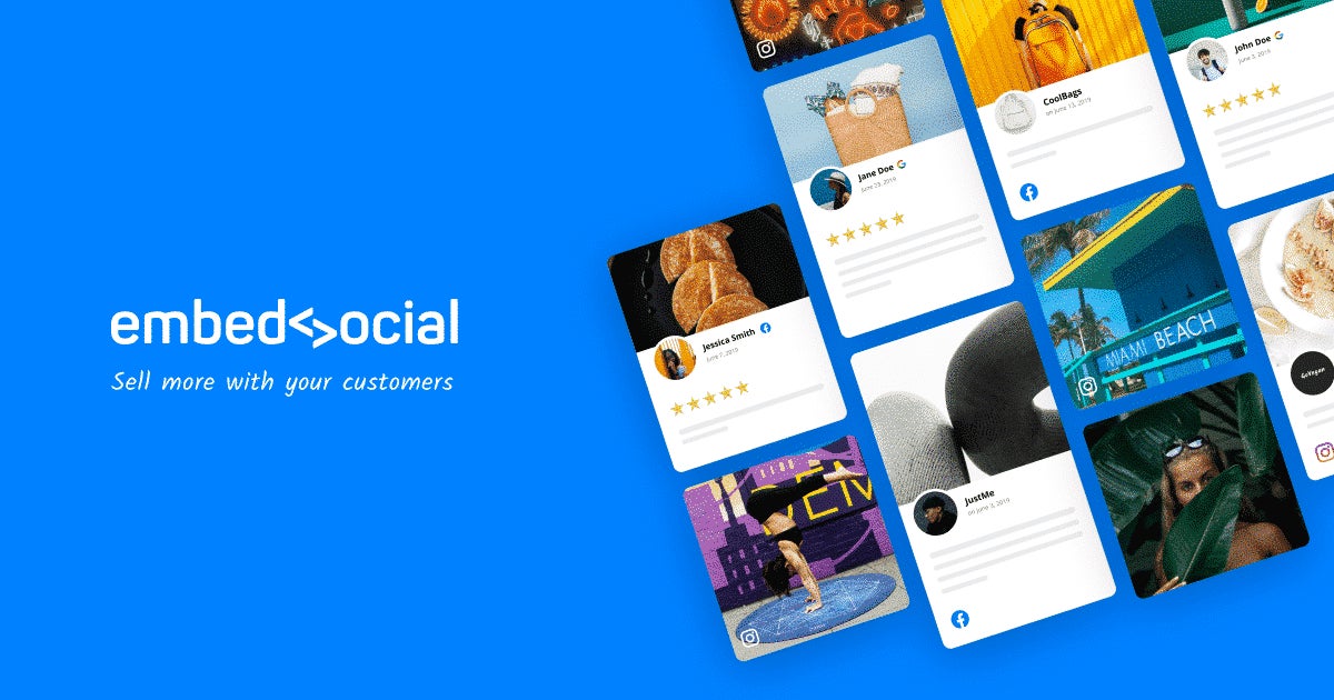 EmbedSocial エンベッドソーシャルとは、InstagramやTwitter・Youtubeなどの7種類以上のSNSから写真・動画・口コミなどを簡単にWEBサイトに組み込むことができる、SaaS型のウィジェット作成ツールです。