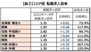 エリア別 転職求人倍率