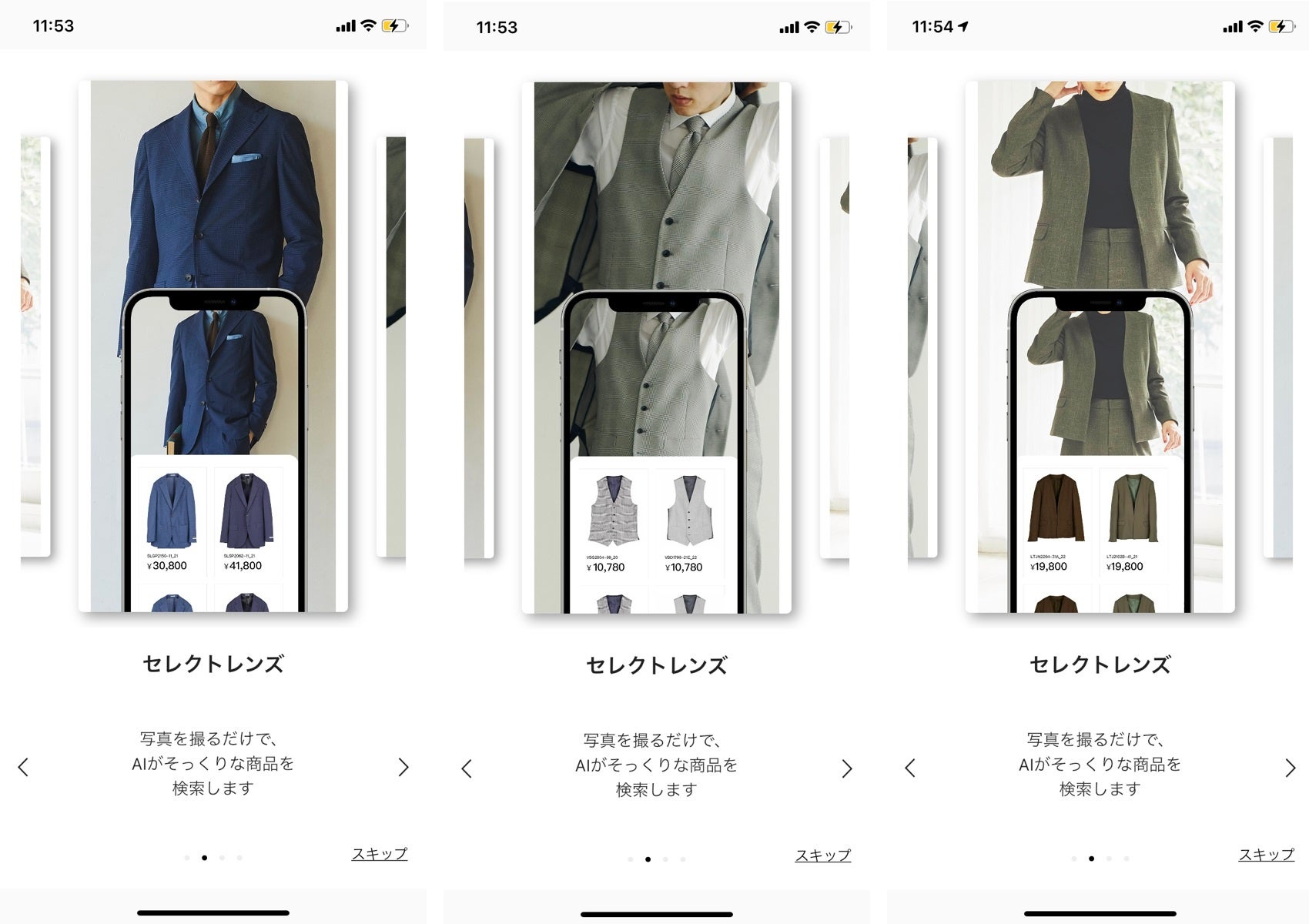 スーツセレクトのアイテム総在庫約10,000点の中から、AIがお探しのアイテムを見つけます。
