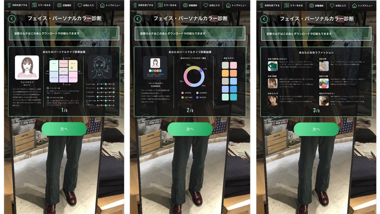 AIカメラで撮影し、フェイス・パーソナルカラーを診断可能に。