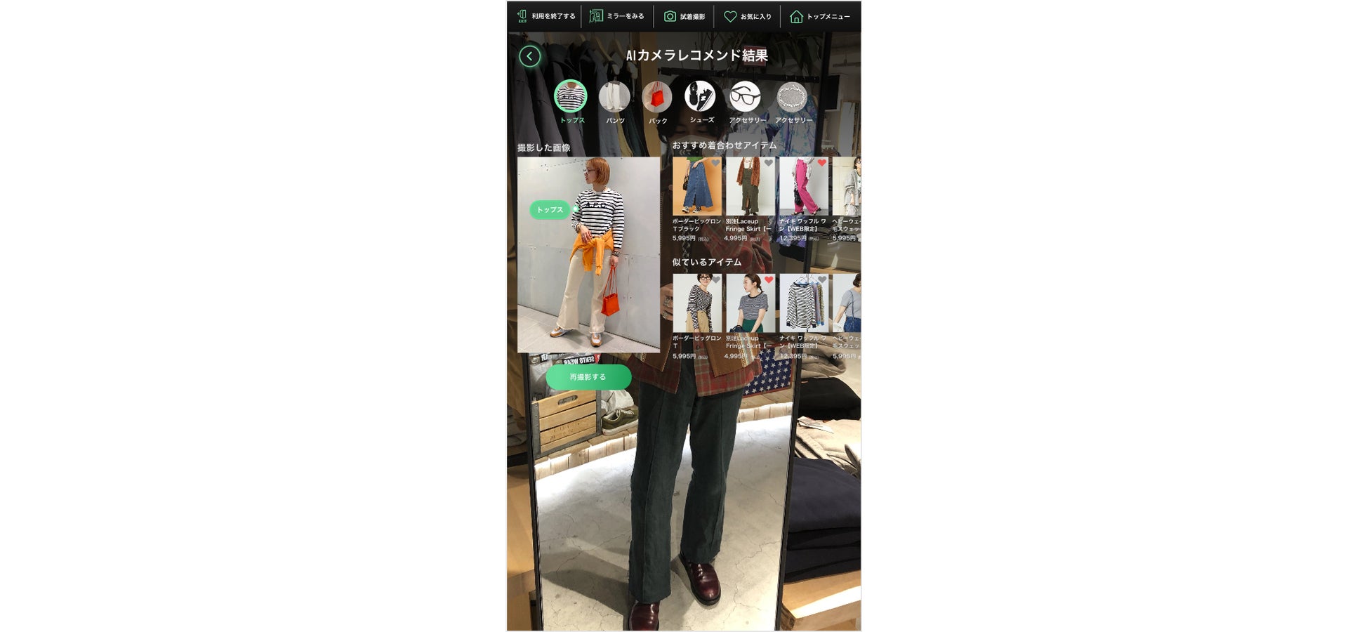 ②AIカメラでお客様のコーディネートアイテムを識別し、おすすめの商品を提案(syte機能)