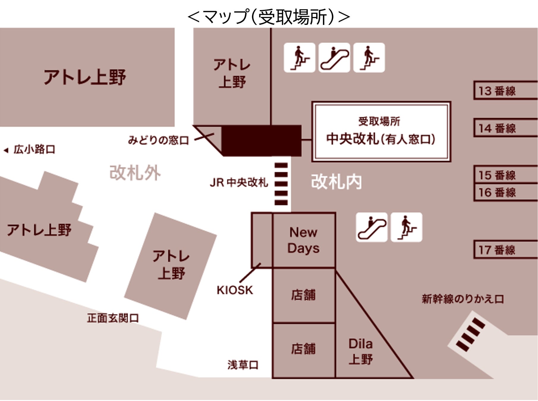 ③指定したお受け取り日時に、JR上野駅中央改札の有人窓口にて受け取り