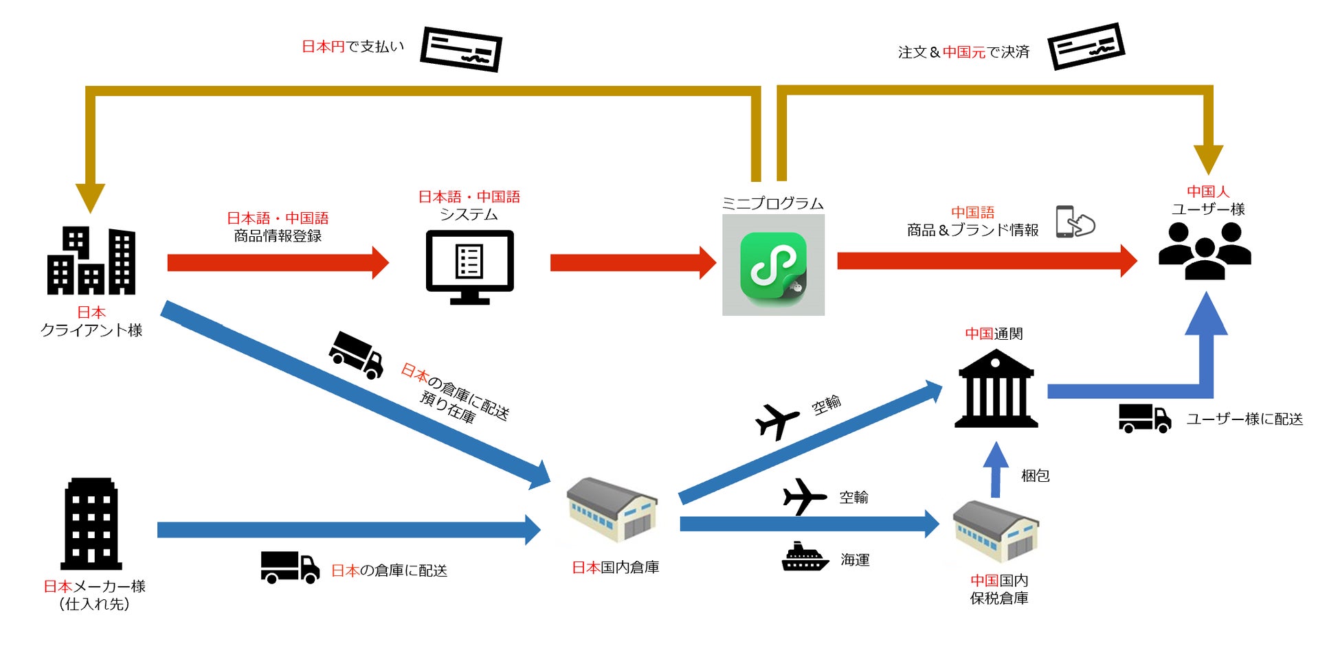 なお、WeChatミニプログラムの制作(アプリ内で動くネットショップのページ制作)はトリオシステムズ株式会社(東京都)に担当いただいております。