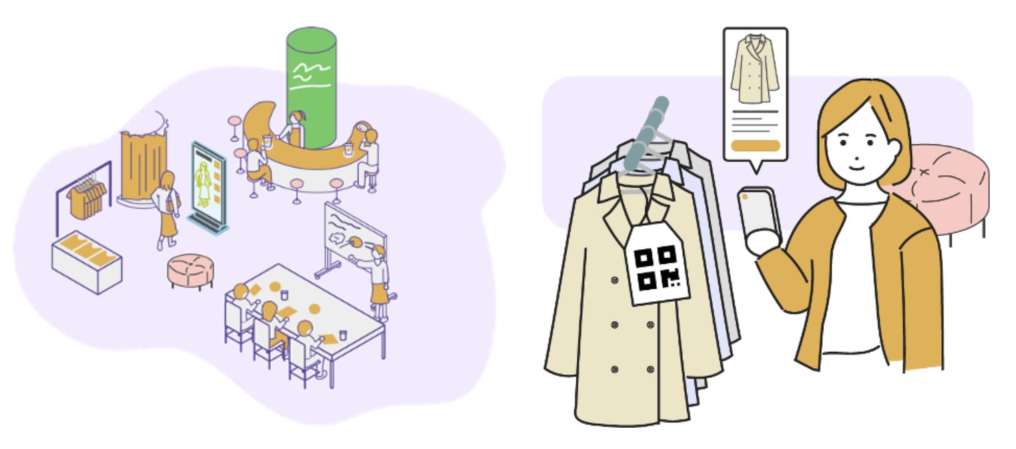 お客様は、自由に商品を手に取りながら、商品単位に設置されるQRコードを自分のスマホで読み取ることで、開発のストーリーやこの商品を手にすることで何が自分に与えられるのか?を発見することができます。原則、お客様の感性を重要視し、押し売りするような接客は発生しません。購入する場合は、LPから遷移する各ブランドの公式ECサイトで購入することになり、レジは存在しません。