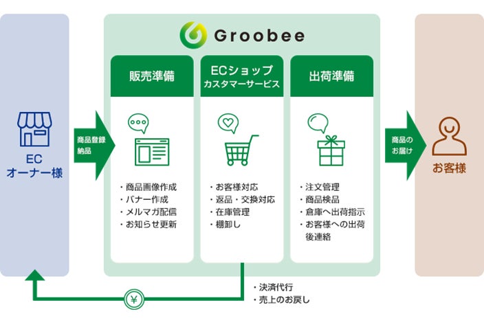 Groobee(https://groobee.com)はアーティスト・アニメやキャラクターのコンテンツに特化した、エンターテインメントに最適な機能が詰まったサイト構築サービスで初期費用0円からスタートできます。販売商品情報をいただければ、サイト上のクリエイティブ、CS対応から物流対応までGroobeeがサポートいたします。1つのブランド商材を取り扱う単独型のECサイト構築に加え、アーティストやコンテンツが複数存在する場合は、モール型でのECサイト展開も可能です。