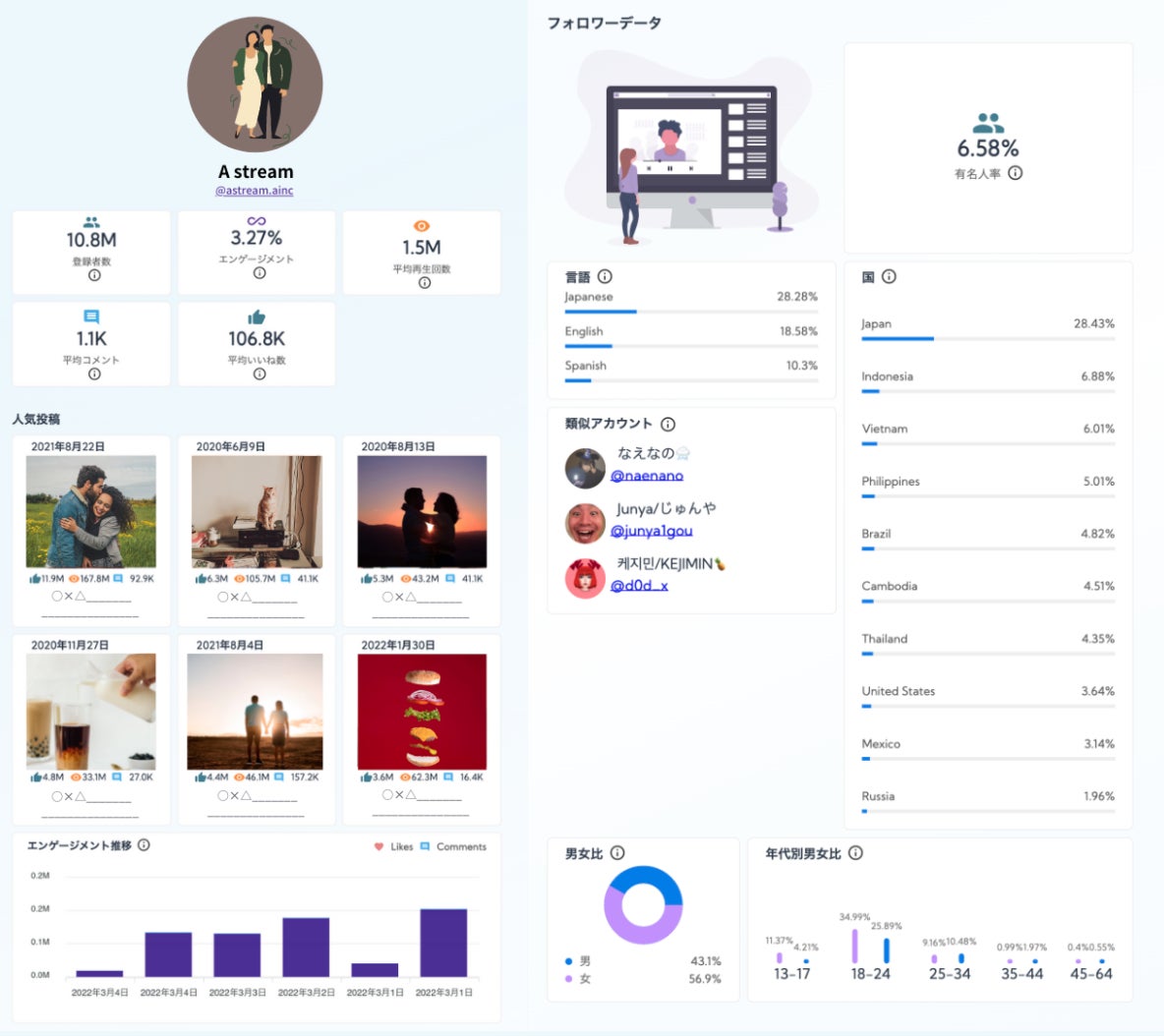 TikTokのユーザーは全体で見ると男性の方が多いのですが、若年層にフォーカスすると女性のユーザーが多いことがわかります。