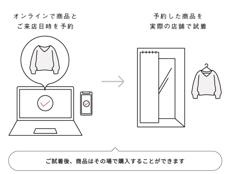 当サービスは、お客様ご自身で商品を選び、好きな店舗で試着が可能です。店舗では、店頭スタイリストとの会話を楽しみながら、商品について気になる点を聞いたり、その商品に合うコーディネートなどを知ることも出来ます。 【「ONWARD CROSSET」×店舗×店頭スタイリスト】と当社の持つリソースを掛け合わせたサービスであり、お客様の新しい買い物スタイルとしてご利用していただけますと幸いです。