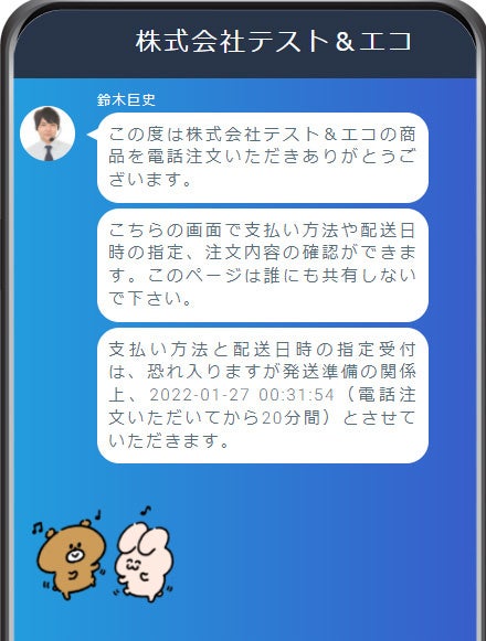 これまで携帯電話からご注文いただいたお客様にはSMSを自動送信し「注文明細ページ」をご案内しておりましたが、この「注文明細ページ」が「お客様専用ぺージ」にリニューアルいたします。「お客様専用ページ」ではチャット風のやりとりで配送日時の指定や支払い方法の選択が可能になります。この機能はテレAIの標準サービスとして4月11日より無料で追加いたします。
