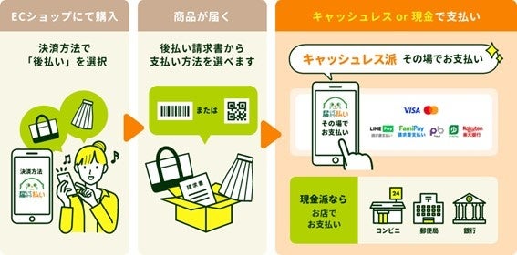 「届いてから払い(SM)」とは、ECサイトや通販で「商品が届いてからお支払い方法を決める」ことができる新しい後払い決済サービスです。従来からご利用いただいているコンビニ払いを中心とした現金での後払いだけでなく、業界唯一となる後払いでのクレジットカード払いやスマホ決済など多様なお支払い方法から選択が可能になる新しい後払い決済サービスです。従来のサービス同様に、事業者様に代わり、当社が未回収リスクを100%保証※1いたします。事業者様は導入いただくことで、消費者様へECサイトや通販でもリアル店舗と同じように商品を確認してからお支払い方法を選択できる新しいショッピング様式が提供可能となります。消費者様の新たなお支払いニーズを満たすことにより、今までの後払い決済以上に新規顧客の獲得に貢献いたします。