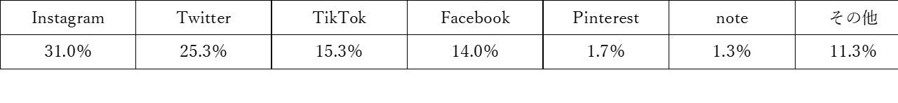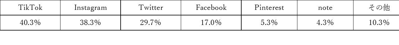 【TikTok】が42.0%、【Instagram】が41.0%と高く、次いで【Twitter】37.3%、【Facebook】が20.7%となりました。