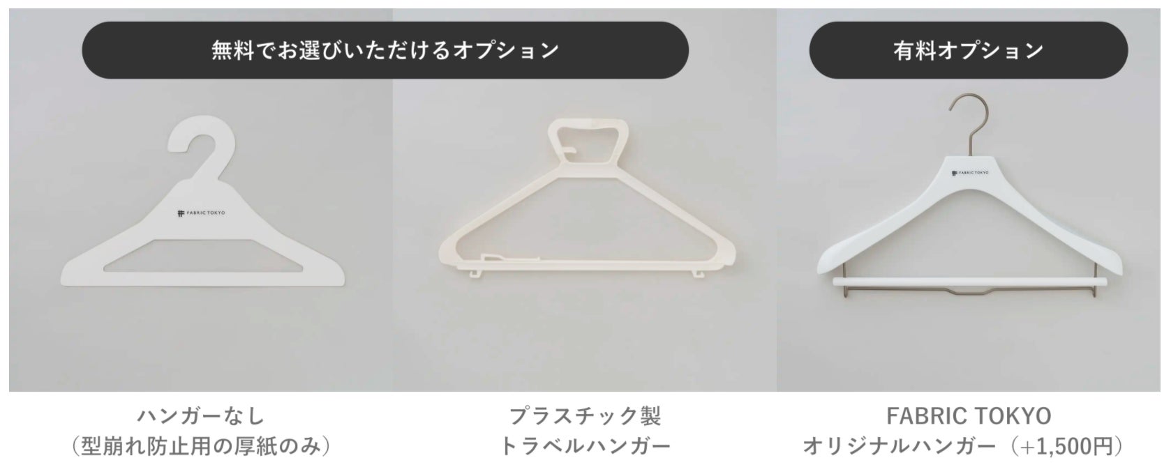今回追加となった有料のFABRIC TOKYOオリジナルハンガーは、素材にプラスチック樹脂を使用していますが、一体成型でつくられており耐久性があるため、長期にわたって使用することができます。