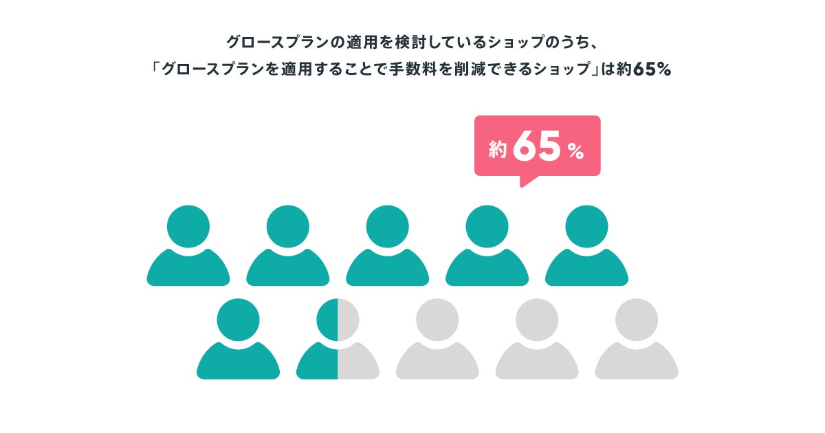 ②グロースプランの適用を検討しているショップのうち、「グロースプランを適用することで手数料を削減できるショップ」は約65%