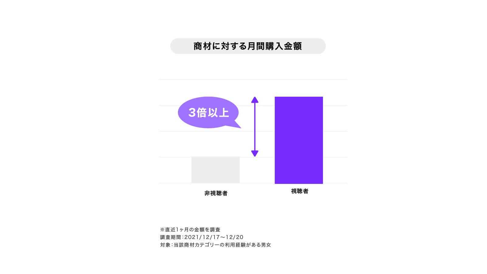 - タイアップ動画を視聴した場合、月間購入金額が3倍以上にアップ