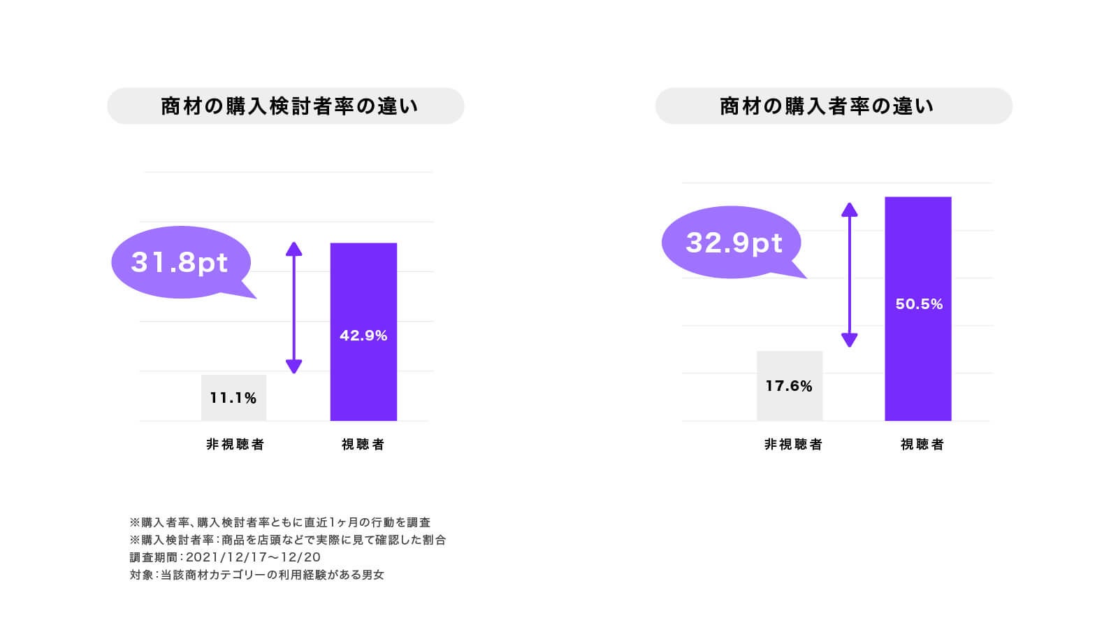 ■2.商材の購入検討者率、購入者率がともに30ポイント以上アップ。