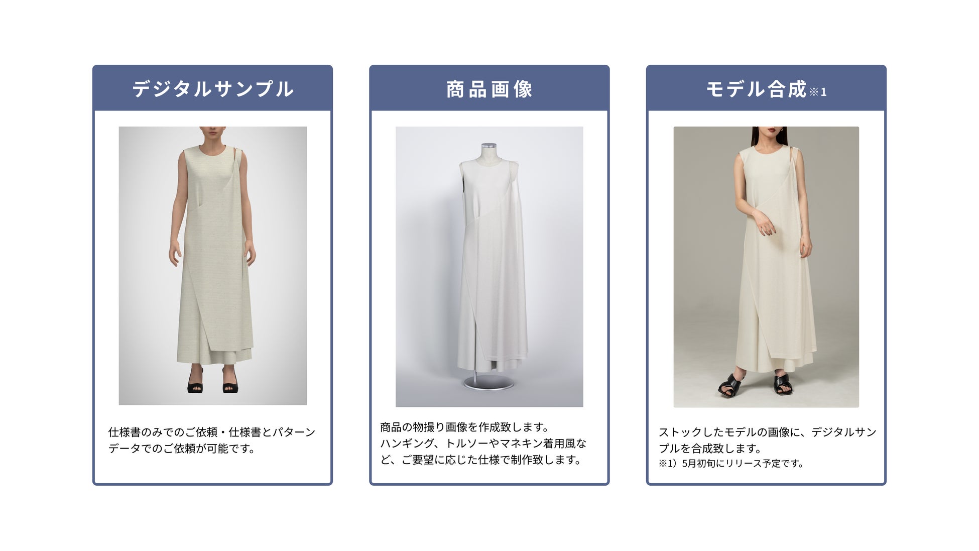 1つのプラットフォーム上で、企画した商品の3Dデジタルサンプル制作依頼、進捗管理、完成データの受け渡しや修正依頼などのコミュニケーションをワンストップで行える、アパレルDXプラットフォームです。今後機能追加や連携サービスを通じ、洋服づくりにおける各種サービスを当プラットフォーム上で提供していきます。