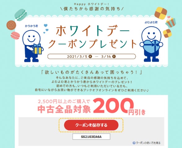 ボタン野郎の無料β版提供にあたり、ブックオフオンライン様のホワイトデークーポンプレゼントページにて先行導入頂きました。