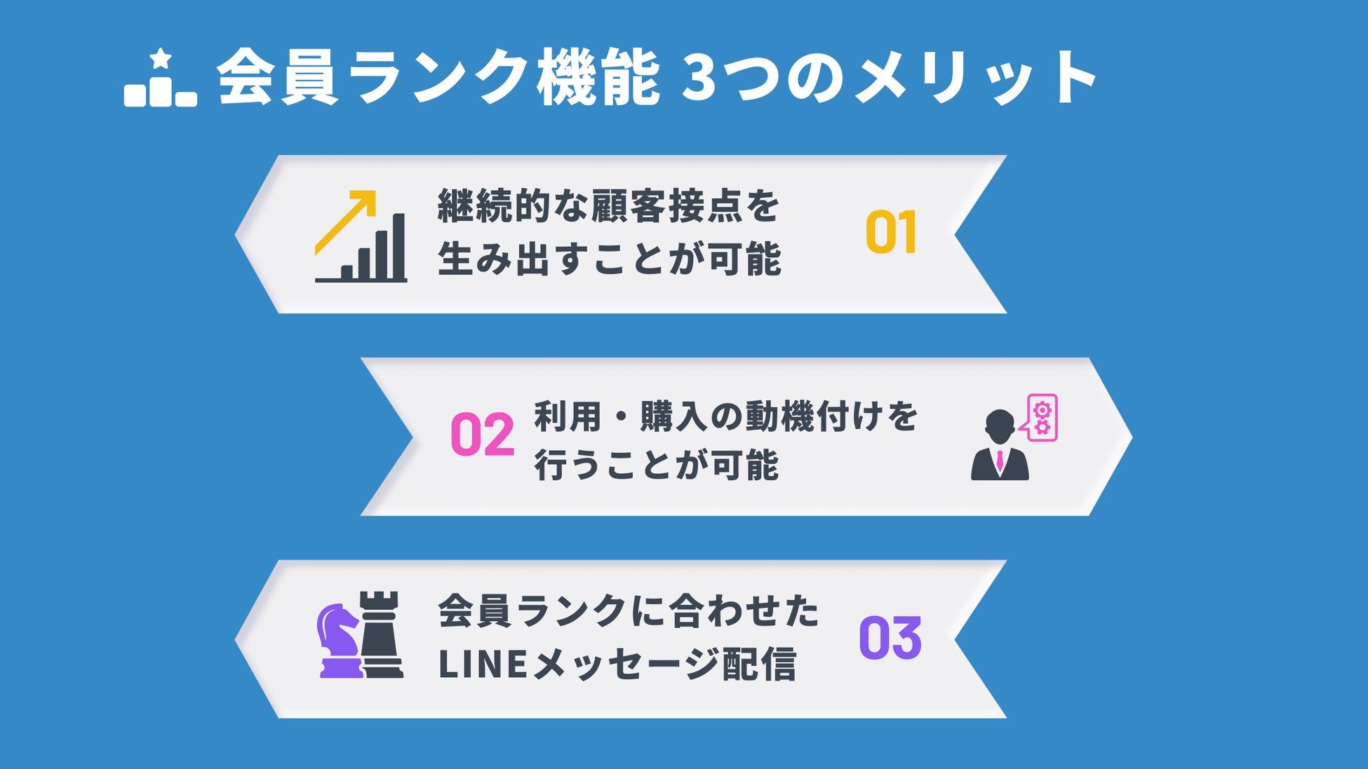 LINEミニアプリ上に会員ランク機能を導入すると、次のようなメリットがございます。