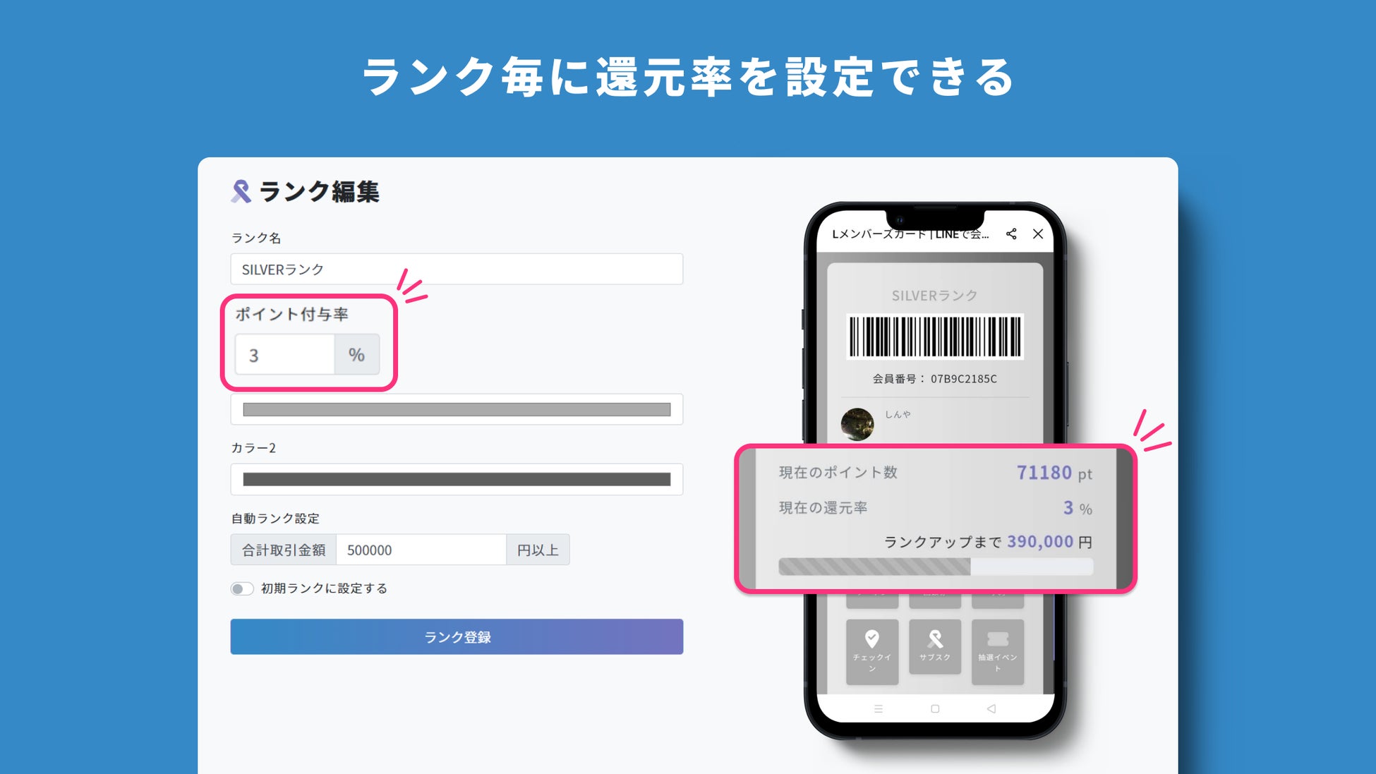 - 会員ランクに合わせたLINEメッセージ配信ができる