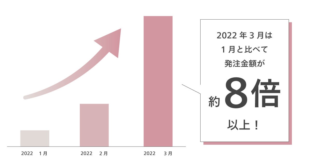 「TRILL mate」および所属インフルエンサーを活用した広告サービスを開始した2021年11月以降、おかげさまで国内外の化粧品メーカー、アパレルメーカー、消費財メーカーを中心としたお客様にご好評をいただき、2022年3月は1月対比で848%の発注金額をいただいています。