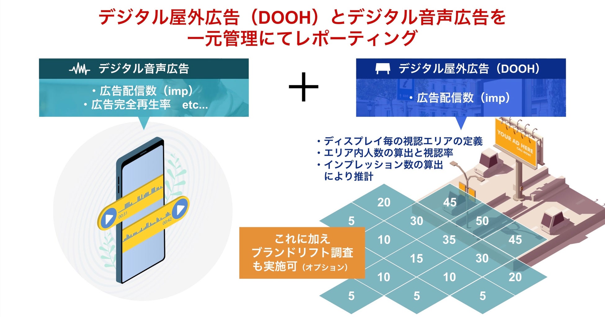 ■デジタル屋外広告(DOOH)と音声広告の配信結果を統合してレポーティング