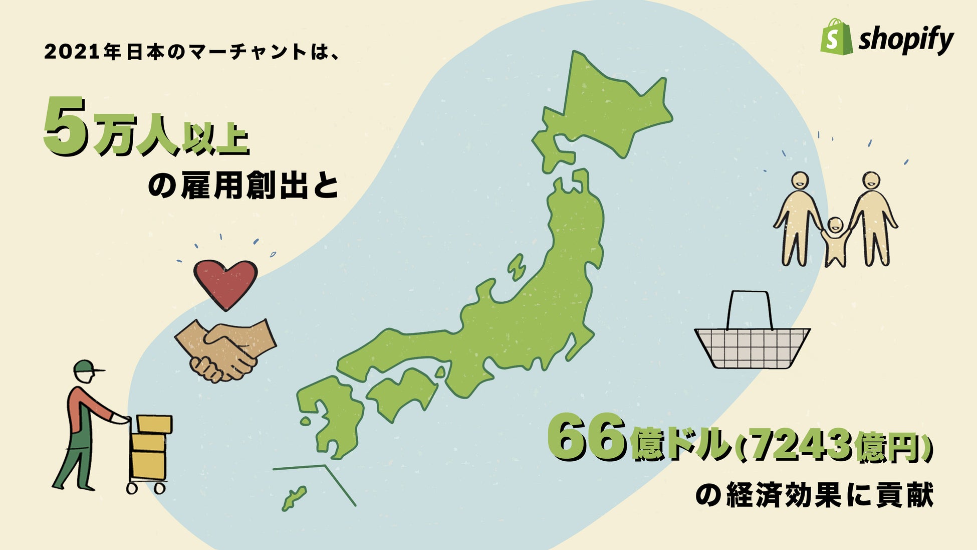 世界最大級のコマースプラットフォーム、Shopify(ショッピファイ)の⽇本法⼈Shopify Japan 株式会社(本社:東京都渋谷区、日本カントリー・マネージャー:太原 真 以下:Shopify)は、Shopifyでビジネスを運営しているマーチャントが2021年に世界に与えた経済効果を発表します。マーチャントは、地域社会で雇用機会を生み出したり、地球環境に貢献したりと、それぞれの業界を前進させ多方面で活躍しています。Shopifyではこのマーチャントの活躍に伴う影響を「Shopify Effect」と呼び、その効果を測定するため、世界有数のコンサルティング会社であるDeloitte(デロイト)と提携しました。