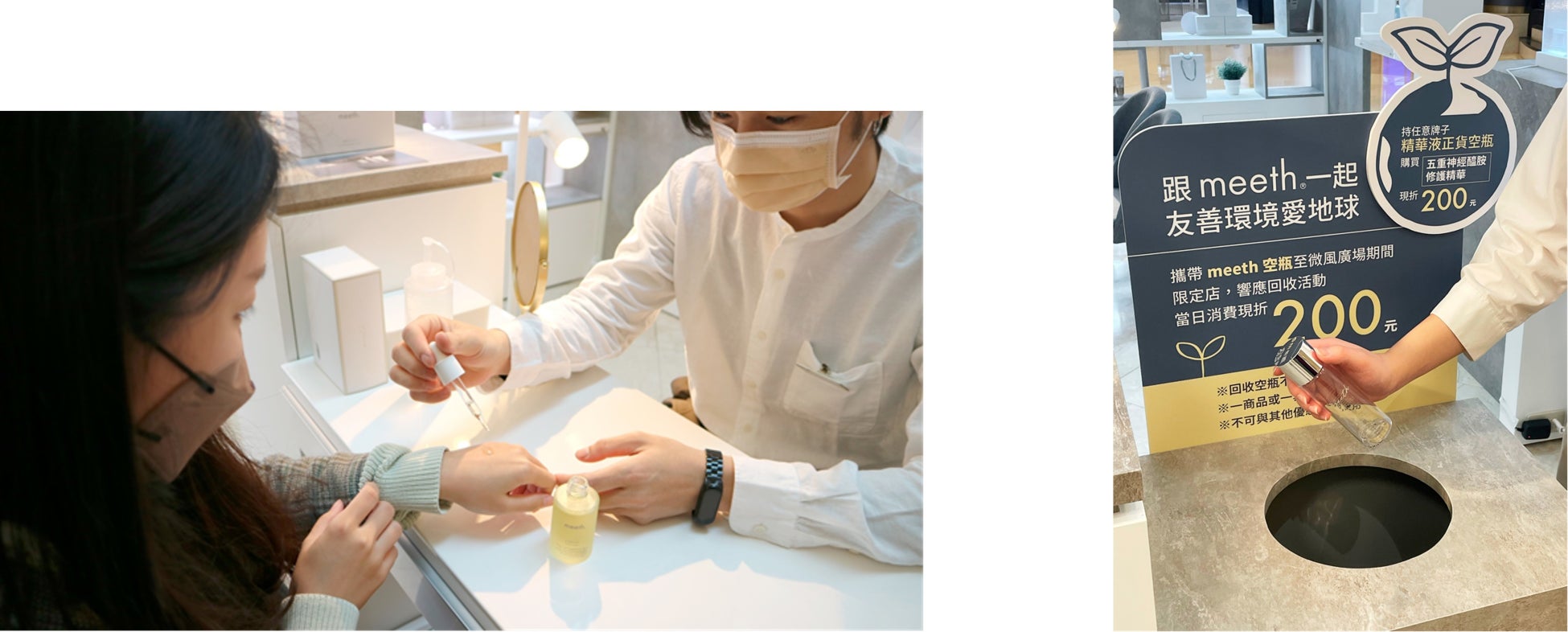 meethポップアップ店では、meethのメイン商品である、モアリッチパックのディスプレイを行い、また、限定のセット商品の販売も行いました。トレーニングを受けた販売員の接客により、meethの商品をより深く知ることができます。期間中は台湾女性向けメディアのPOPDAILYのレポーターにスキンケア体験をしてもらうなど、ポップアップ店の注目度を高めることができました。