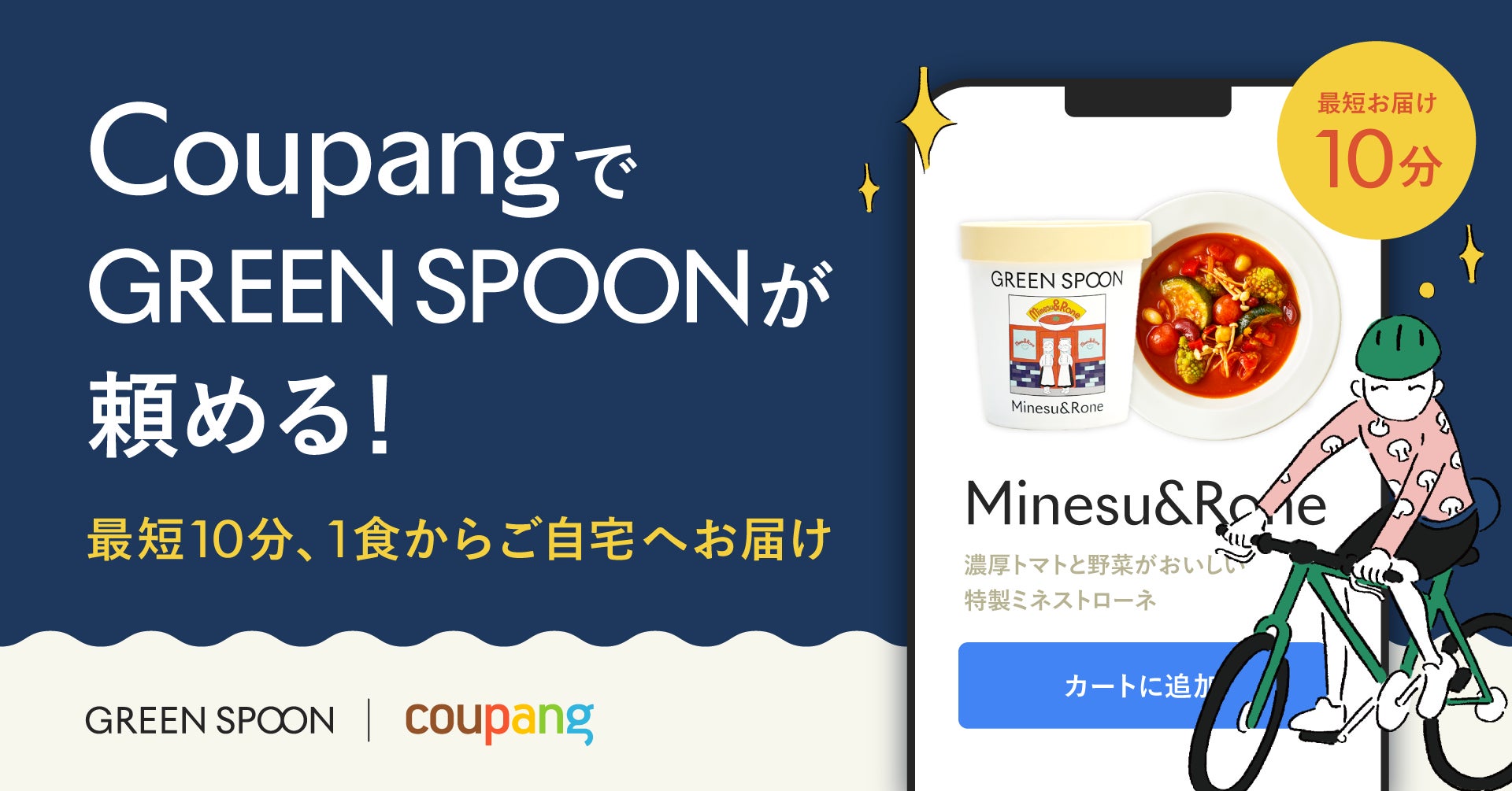 そのような「おいしい・たのしい・カンタン・ヘルシー」を叶えるGREEN SPOONをより広く体験していただくために「1食から」「すぐに」頼むことができる「Coupang」と提携いたしました。