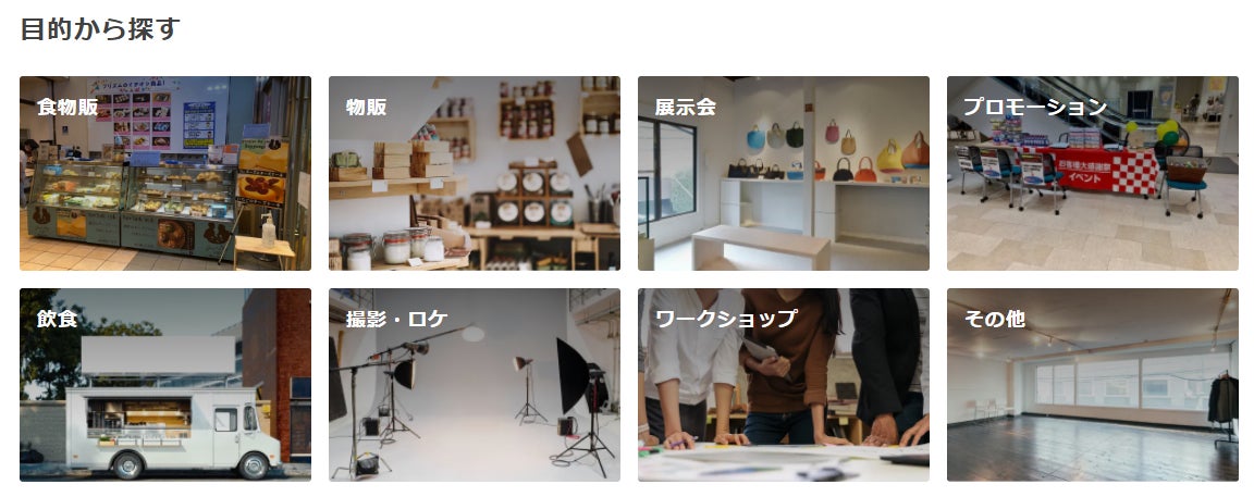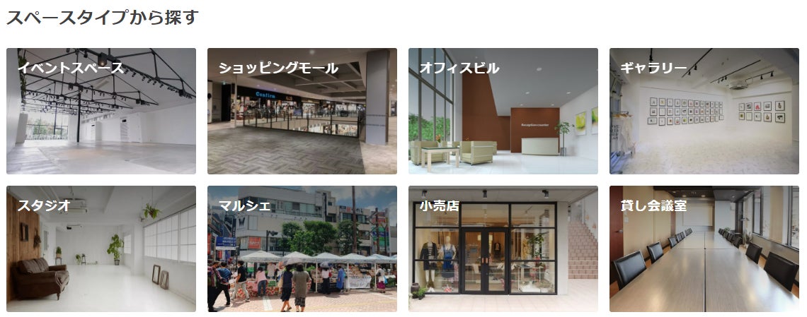2015年5月のサービスリリース後、利用者数、掲載スペース数ともに年々増加しており、現在では2400以上のスペースが掲載されております。一方で、多くのスペースから目的にあったスペースを見つけるのが難しいという声もいただくようになったことから、今回、探しているスペースによりアクセスしやすくなるよう、トップページの変更を行いました。今後もサイトの機能・情報の充実化を図り、出店者とスペースとのマッチングの精度やスピードを向上させてまいります。