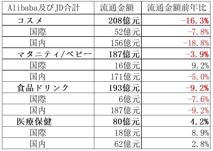 【データ範囲】中国主要ECプラットフォーム(JD、天猫(中国国内及び国際)、淘宝網(中国国内及び国際))
