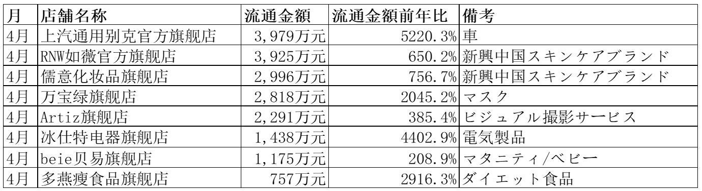 ・上海のオンライン店舗でありながら、他地域の消費により大きく伸長した店舗も