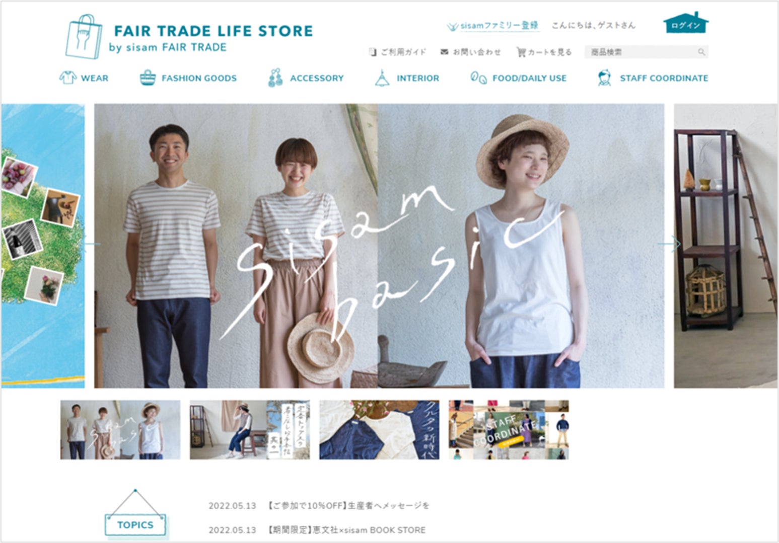 1999年4月25日に京都の郊外で小さなフェアトレードショップとして生まれたシサム工房のネットショップ。創業以来、オリジナルの商品開発を行い、商品の質やデザイン、提案する空間にこだわりながら、チャリティではなく一貫してフェアトレードに事業として取り組まれています。